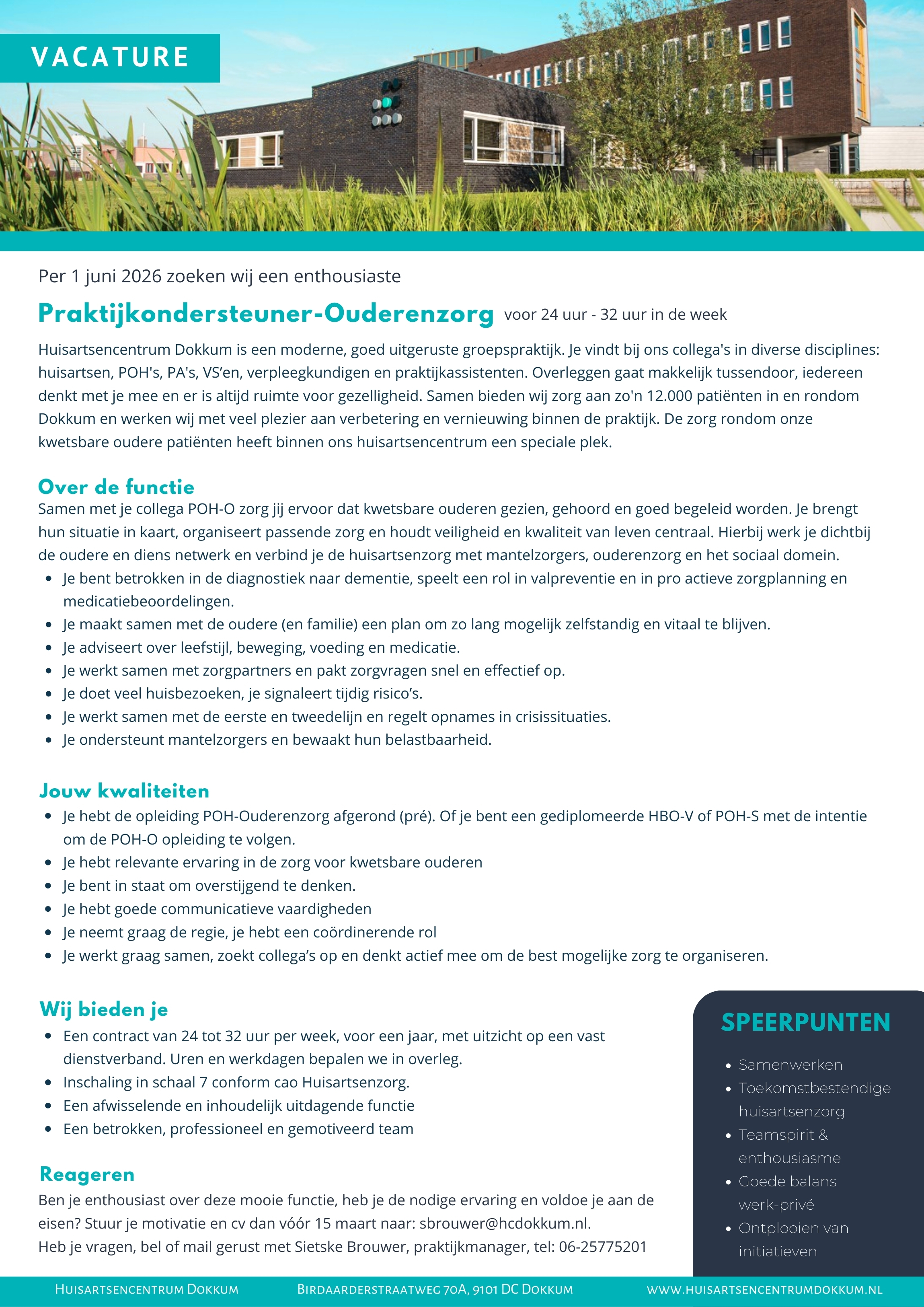 Omdat één van onze gewaardeerde collega’s met pensioen gaat, komt er bij ons een mooie plek vrij voor een nieuwe professional in de huisartsenzorg. Wij zoeken een: